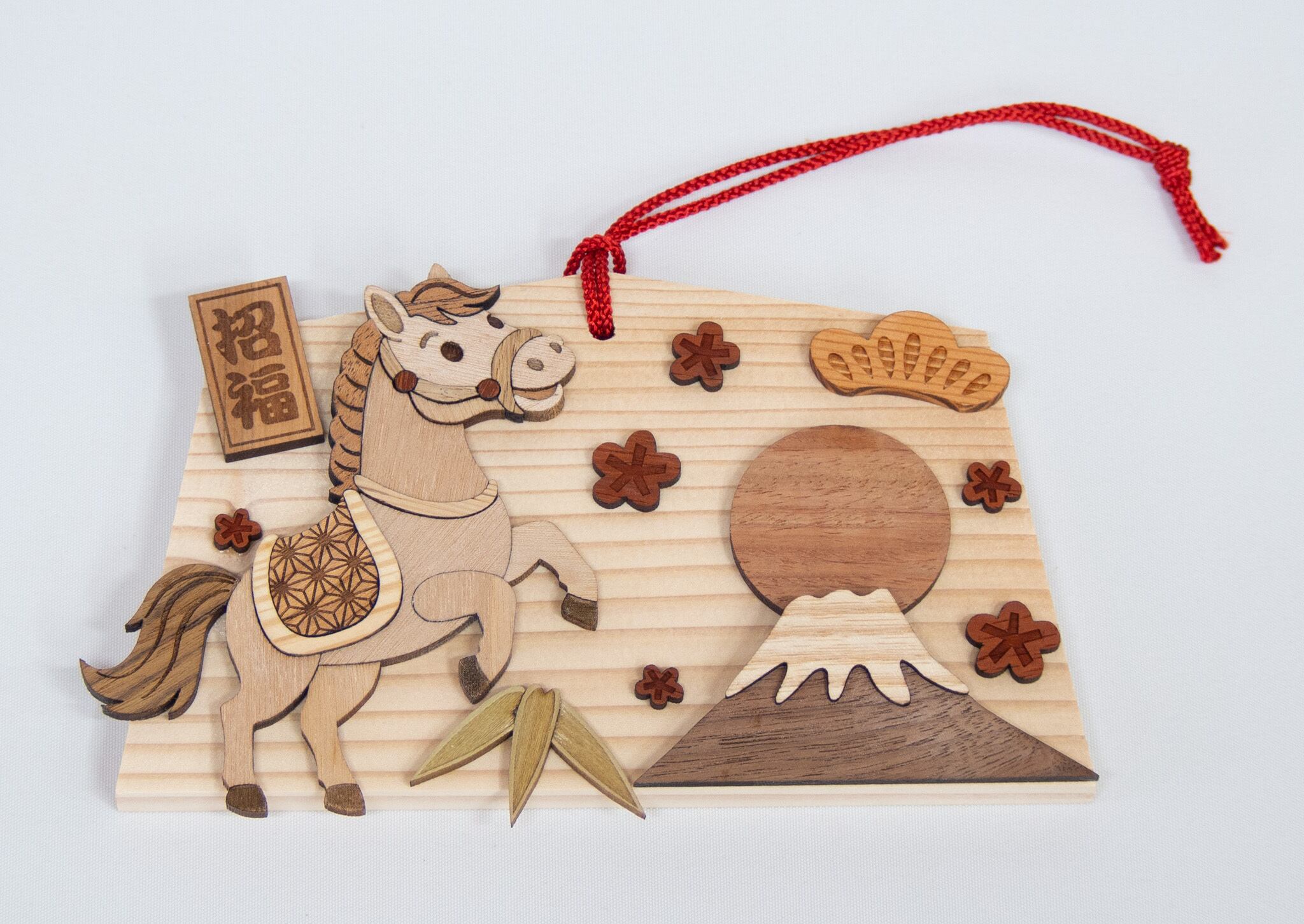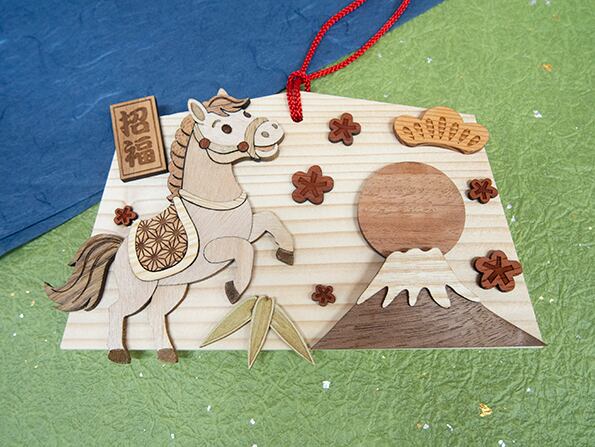 2026年の干支「午」をモチーフに天然木の色合いを生かして製作した木製小物です。